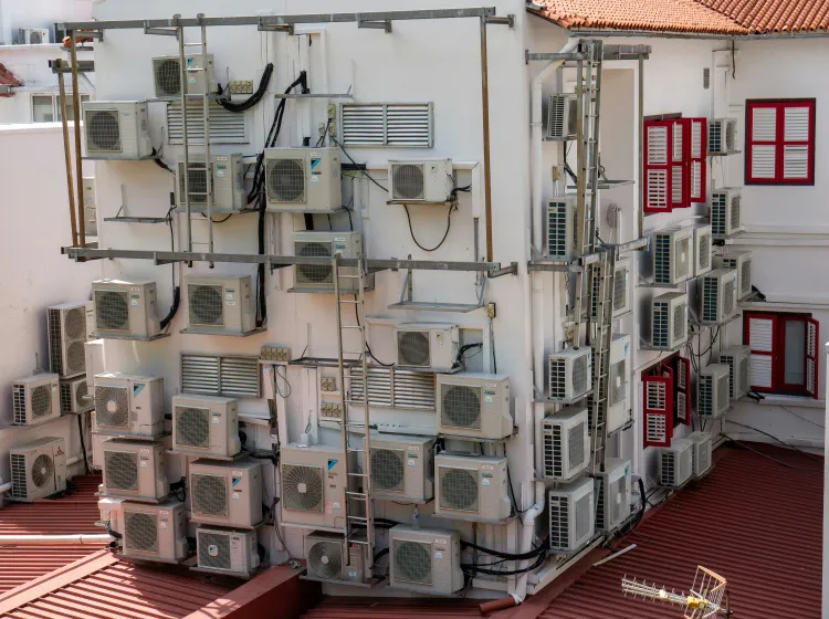 - Klimaat: De warme lucht uit de units vergroot de stedelijke hitte-intensiteit.