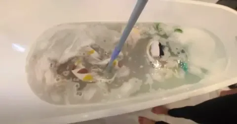 - Is het water afgekoeld en – geen grap – behoorlijk onsmakelijk geworden? Dan spoel je alles goed uit en draai je een extra wasprogramma in je wasmachine. Nu zonder toevoegingen!