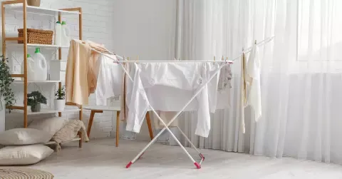 - Te dicht ophangen tijdens het drogen: Zorg dat elk kledingstuk ruimte krijgt — een rekje van Blokker helpt!